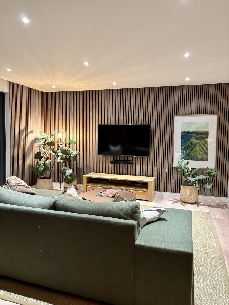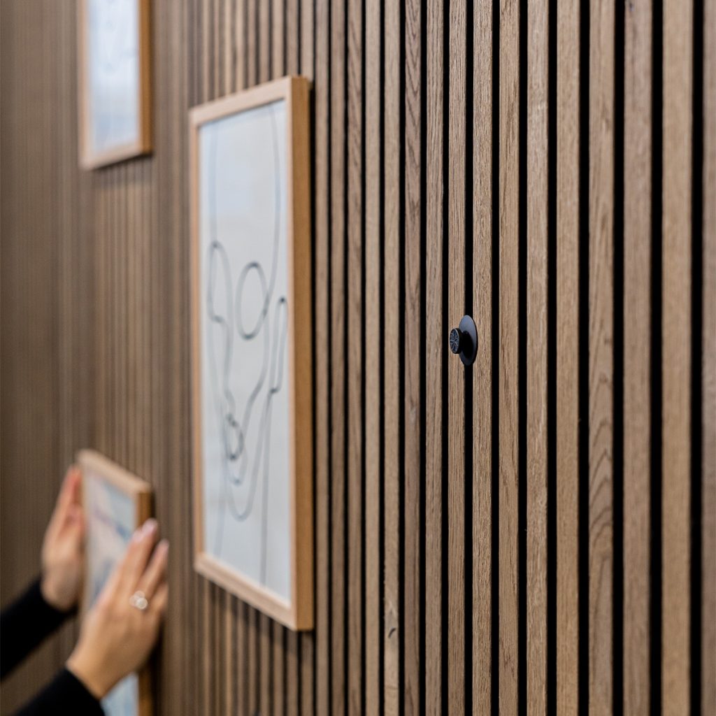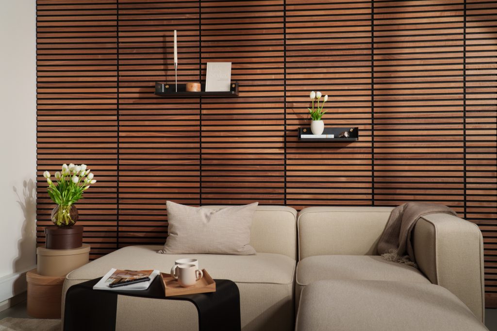Painéis de ripas com capacidade de atenuação sonora, criados para reduzir o eco e elevar a sensação e o ambiente do teu espaço.