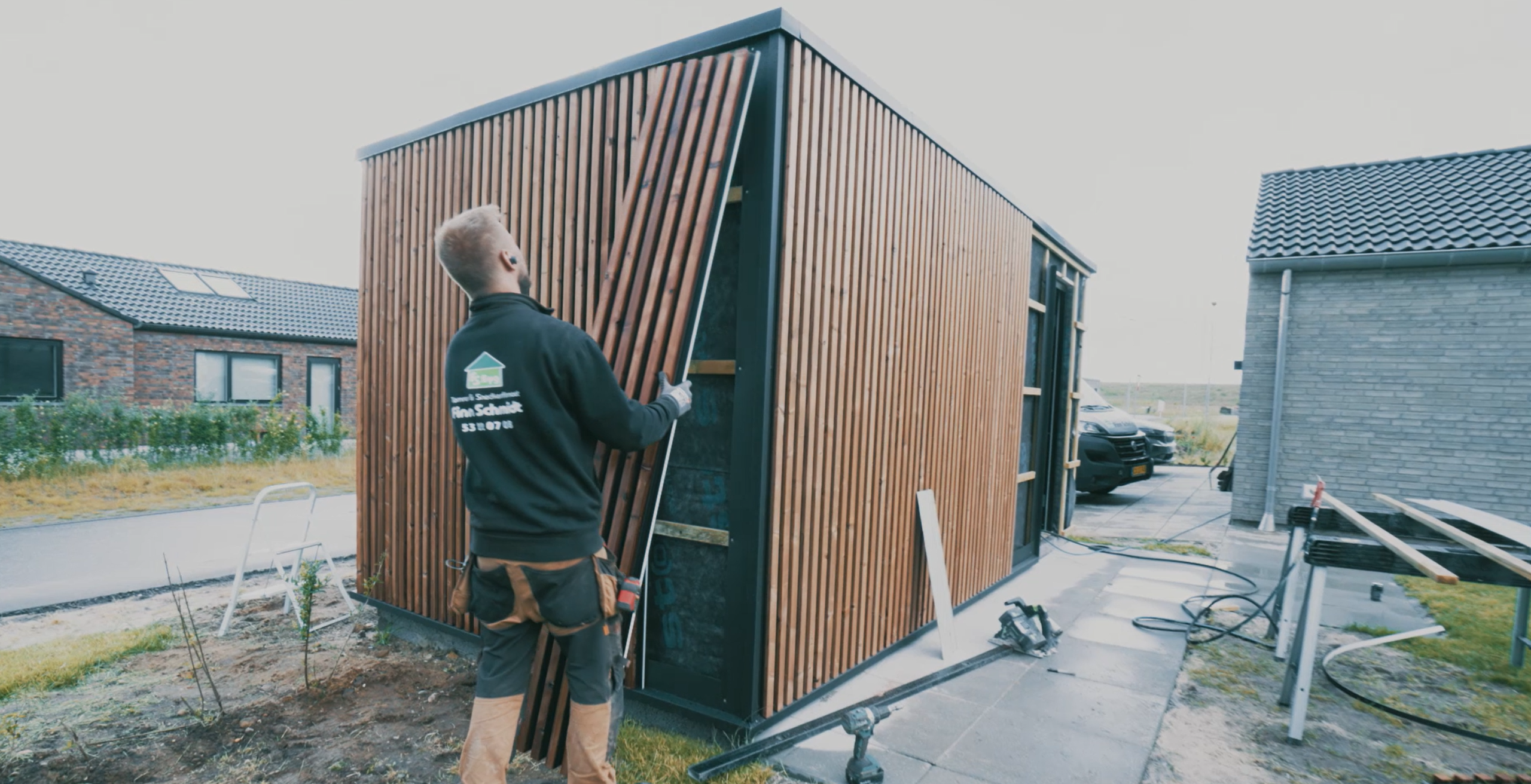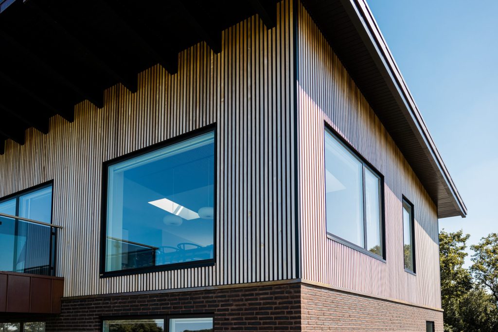 Uma fachada não deve atrasar sua construção. Aluwood utiliza um sistema de montagem simples que reduz o tempo de instalação e os custos de mão de obra em comparação com soluções típicas de lâminas.