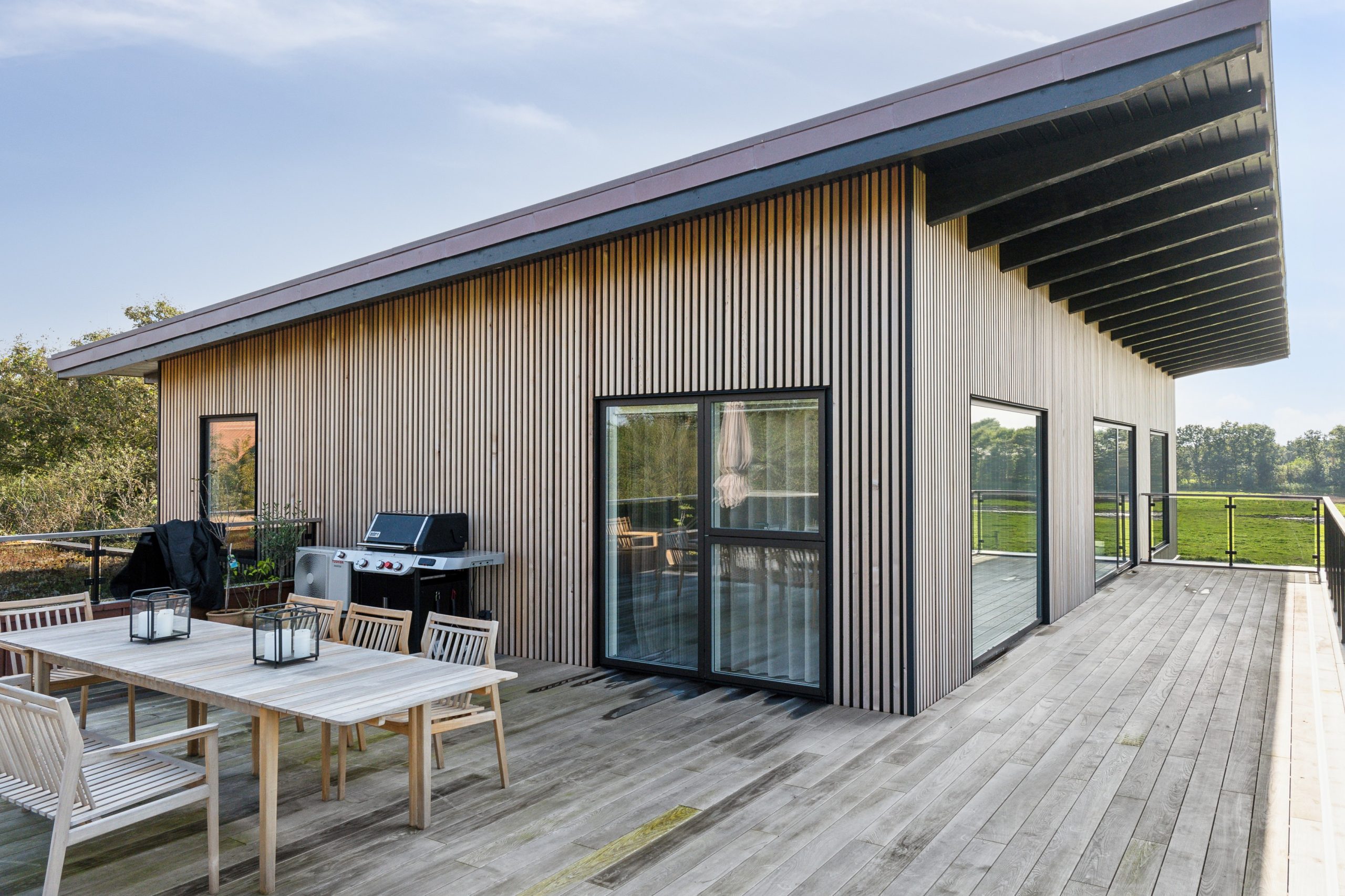 Feitas de madeira tratada termicamente e alumínio revestido, os nossos painéis permitem que você eleve os exteriores com um design escandinavo intemporal.