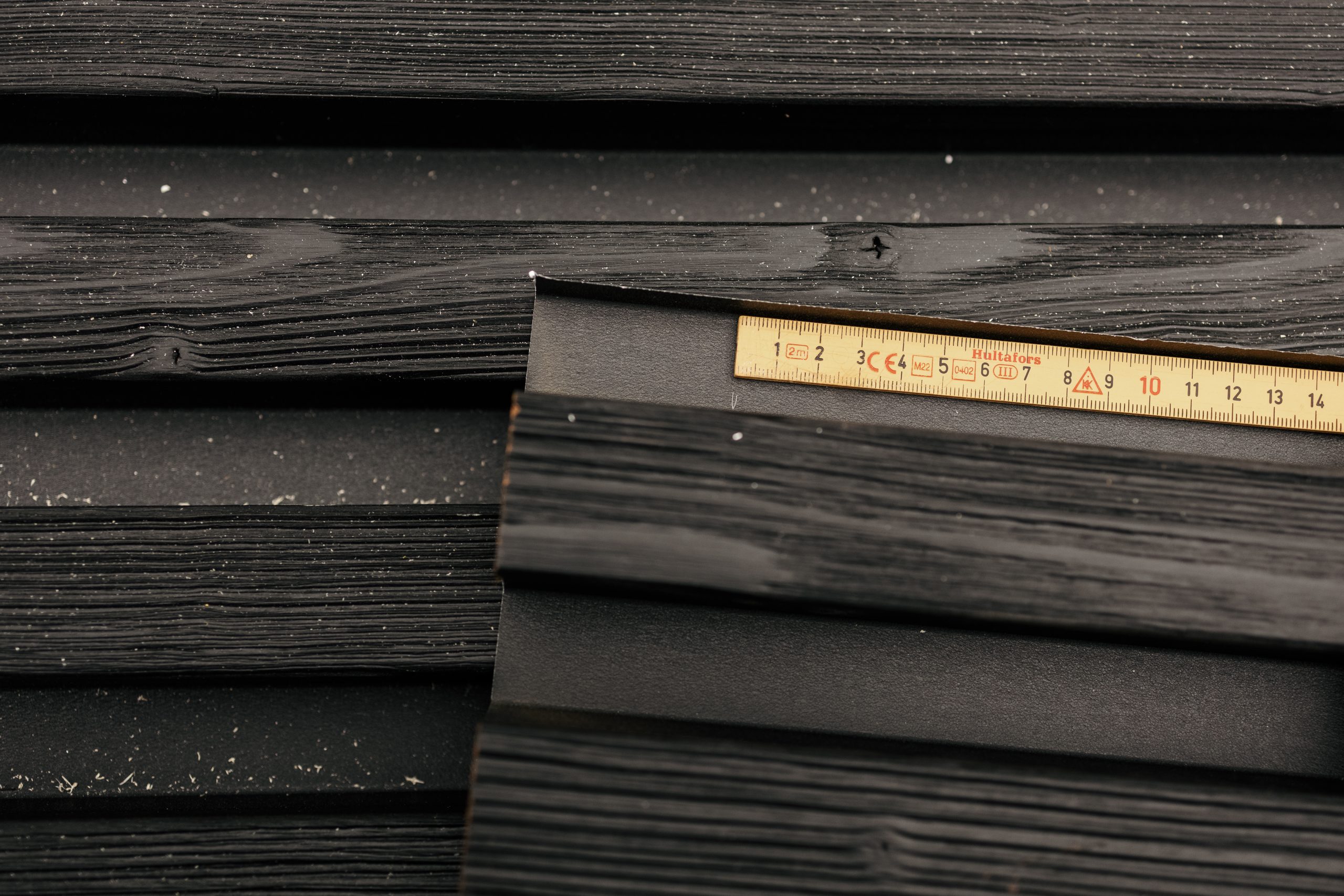 A madeira é aquecida acima de 180°C. O processo constrói resistência natural a insetos e fungos. A textura permanece visível. O caráter permanece.